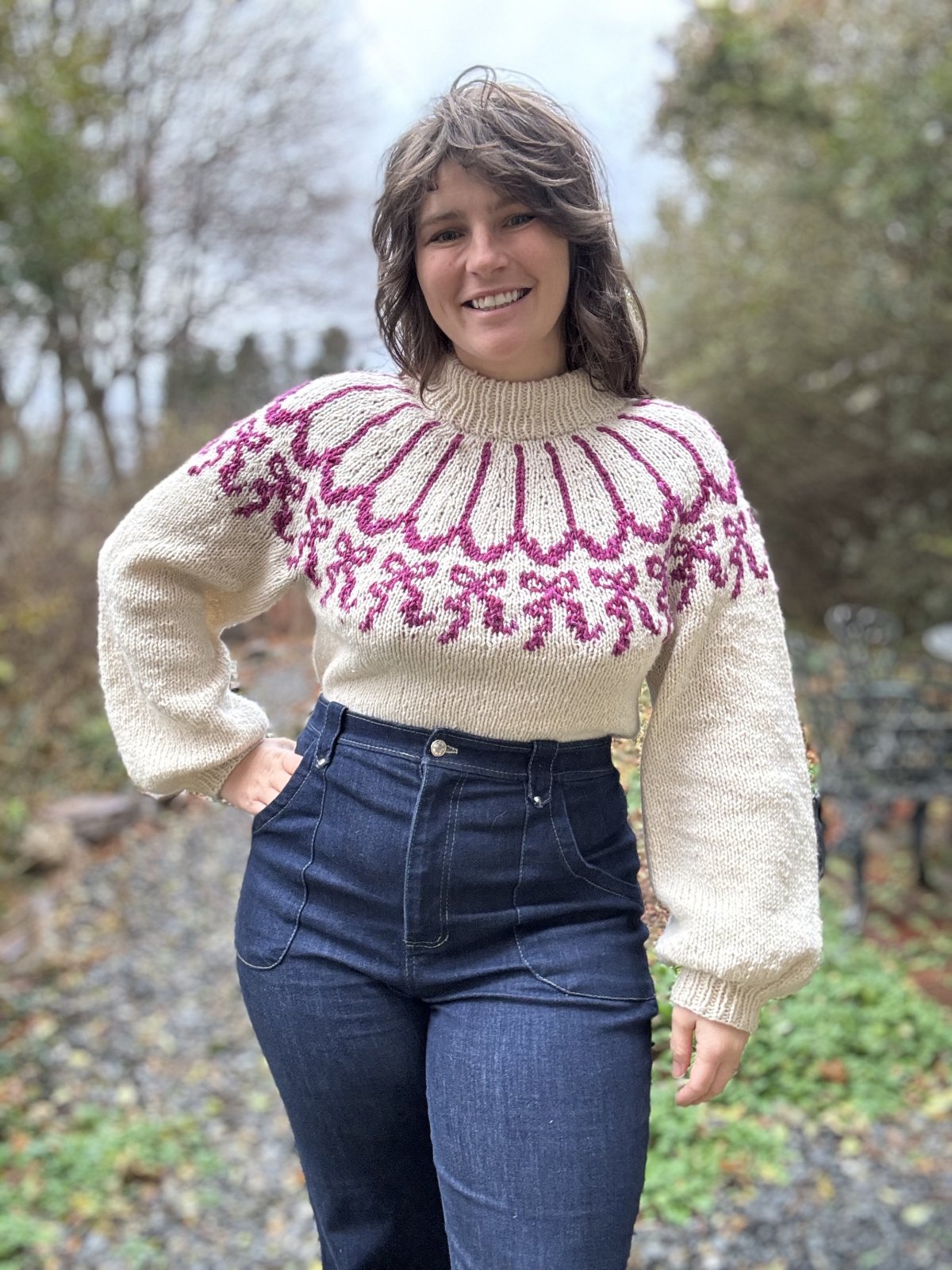 In this four session class, students will receive 4 hours of hands on instruction covering judy's magic cast on as a way to create a folded hem, a k2tog joining row which finishes a folded hem seamlessly, color work in the round, ladderback jacquard, splitting for sleeves, picking up stitches, and modifying a sweater to better fit your needs without compromising yoke fit through underarm stitch count manipulation.